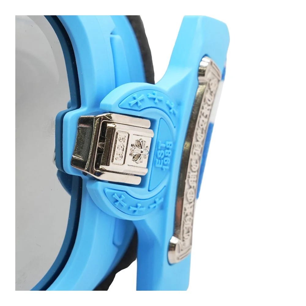 The Silver Morning Ski Goggles in Blue/Silver by Chrome Hearts are luxury snow goggles that fuse top‑tier performance with bold, high‑fashion design. Featuring premium Carl Zeiss lenses for enhanced contrast, UV protection, and clarity on the slopes, these standout goggles pair a vibrant blue frame and strap with striking silver‑tone hardware and iconic Chrome Hearts motifs. Built with moisture‑wicking foam, adjustable straps, and durable materials for comfort and stability in winter conditions, they serve as both functional ski gear and a statement accessory for the style‑conscious rider.