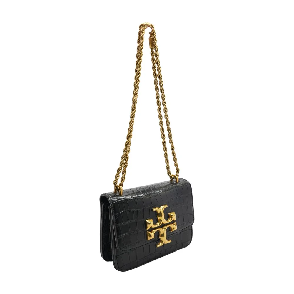 Small Black Eleanor Croc-Embossed Shoulder Bag